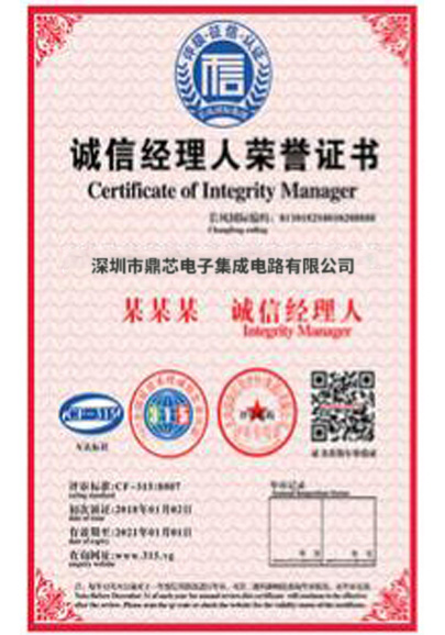 诚信经理人荣誉证书