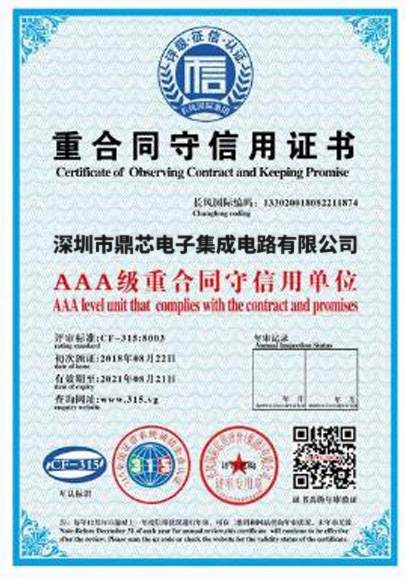 重合同守信用证书